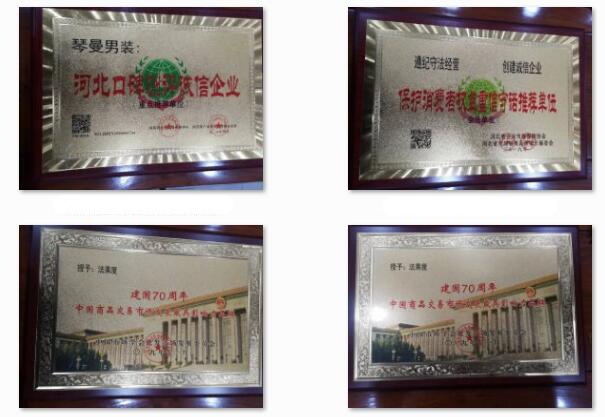 琴曼牌服饰历年来荣获国家级几十项殊荣:1994年荣获中国十大名牌称号;1998年“琴曼”商标被审定为江苏省著名商标;1999年3月底,公司顺利通过IS09002国际质量认证,并于2002年通过IS09001:2000换版认证;2002年“琴曼”衬衫被审定为江苏名牌产品;2003年“琴曼”衬衫被审定为国家免检产品,“琴曼”西服被审定为江苏名牌产品,同年,公司顺利通过IS014001:1996国际环境管理体系认证。多年来被评为银行信用等级AAA企业和重合同守信用企业。