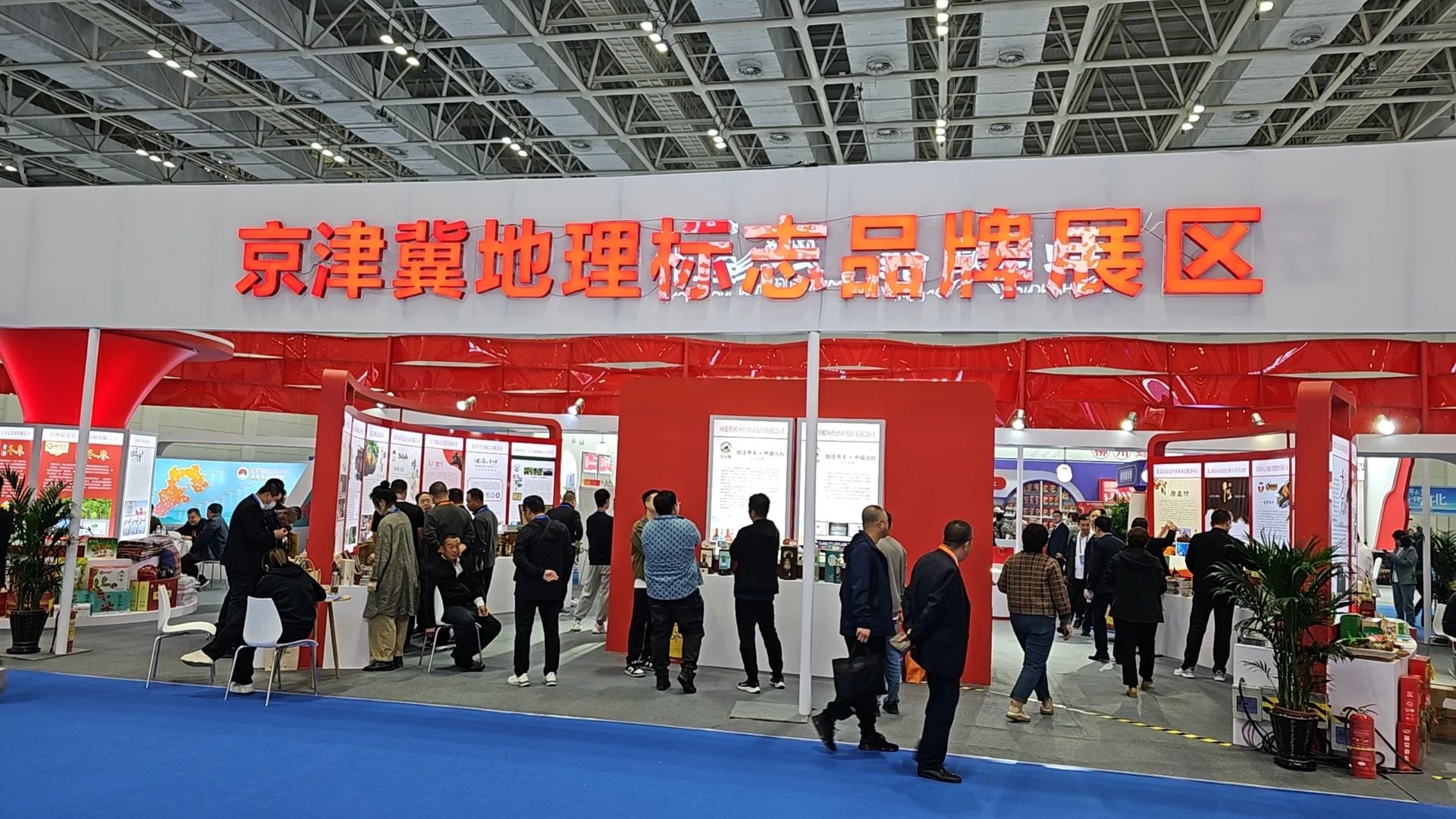 北京牛栏山二锅头、平谷大桃、茶淀葡萄、台头西瓜、崔庄冬枣、衡水老白干、丛台酒、晋州鸭梨、沙城葡萄酒、沧州金丝小枣、山海关大樱桃、平泉香菇、赞皇大枣、贵州茅台、绍兴黄酒、贺兰山东麓葡萄酒、柳州螺蛳粉、五常大米、普洱茶、阳澄湖大闸蟹、邢台羊绒、凤冈锌硒茶、郫县豆瓣、蜀绣、烟台苹果、威海海参、宁夏枸杞、南京云锦、宜兴紫砂、普洱咖啡、横县茉莉花茶、茂名荔枝、新会陈皮、凤凰单丛、兰州百合唐山骨质瓷、京东板栗、乐亭甜瓜、柏各庄大米、曹妃甸河豚鱼等地标产品展示。